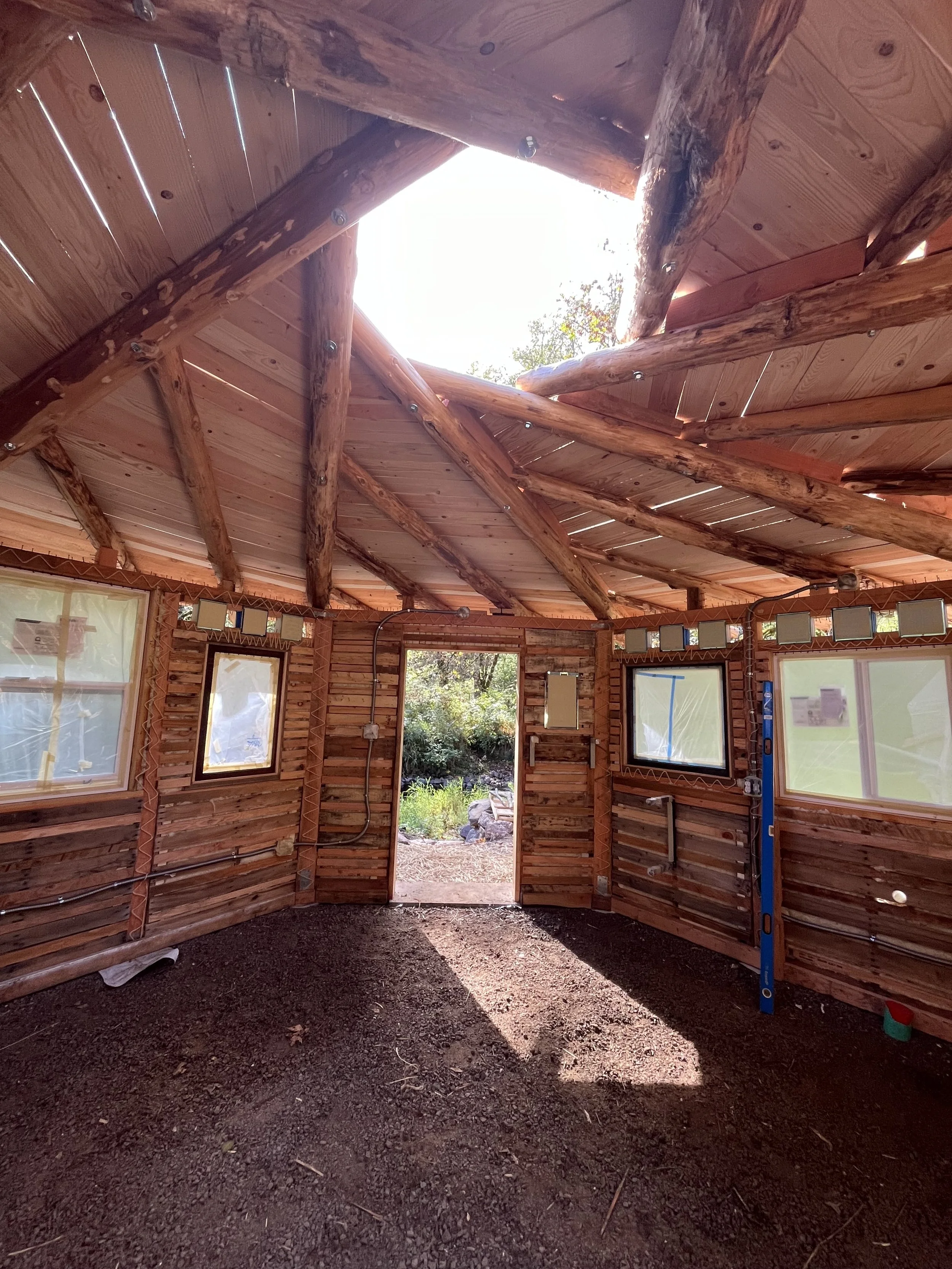 While installing the roof onto a completed 175 sf monolithic cob building, we will be doing a lot of carpentry. All students will learn how to safely use: circular saw, table saw, chop saw (miter saw), measuring tape & speed square, reciprocating saw (“sawzall”), battery drill, battery impact driver, bigger corded drill, metal grinder, jigsaw, lots of other fun hand tools essential to carpentry.